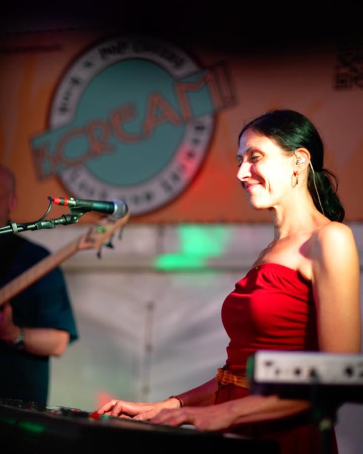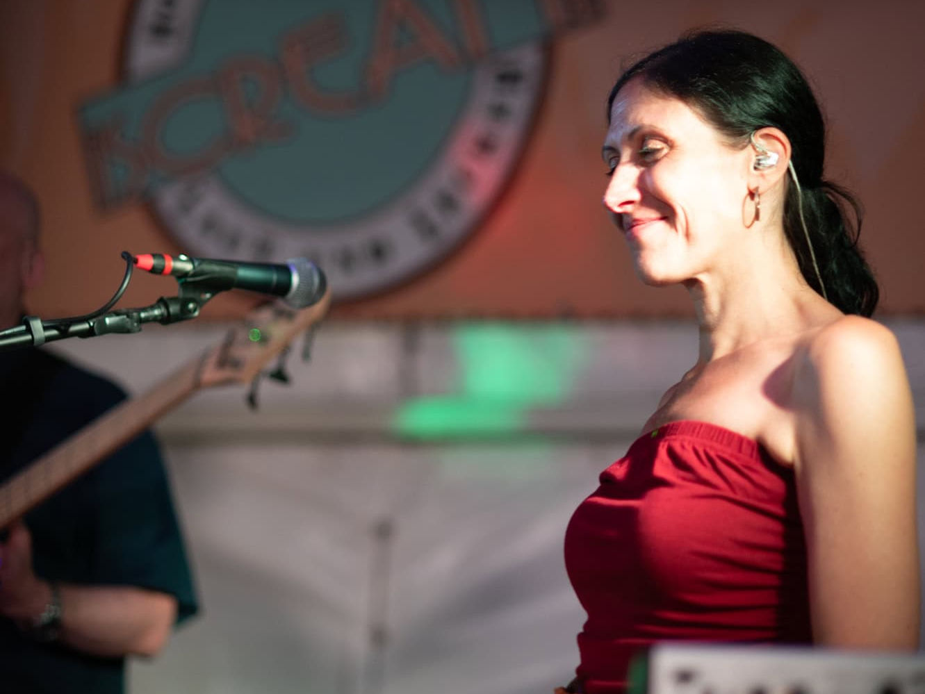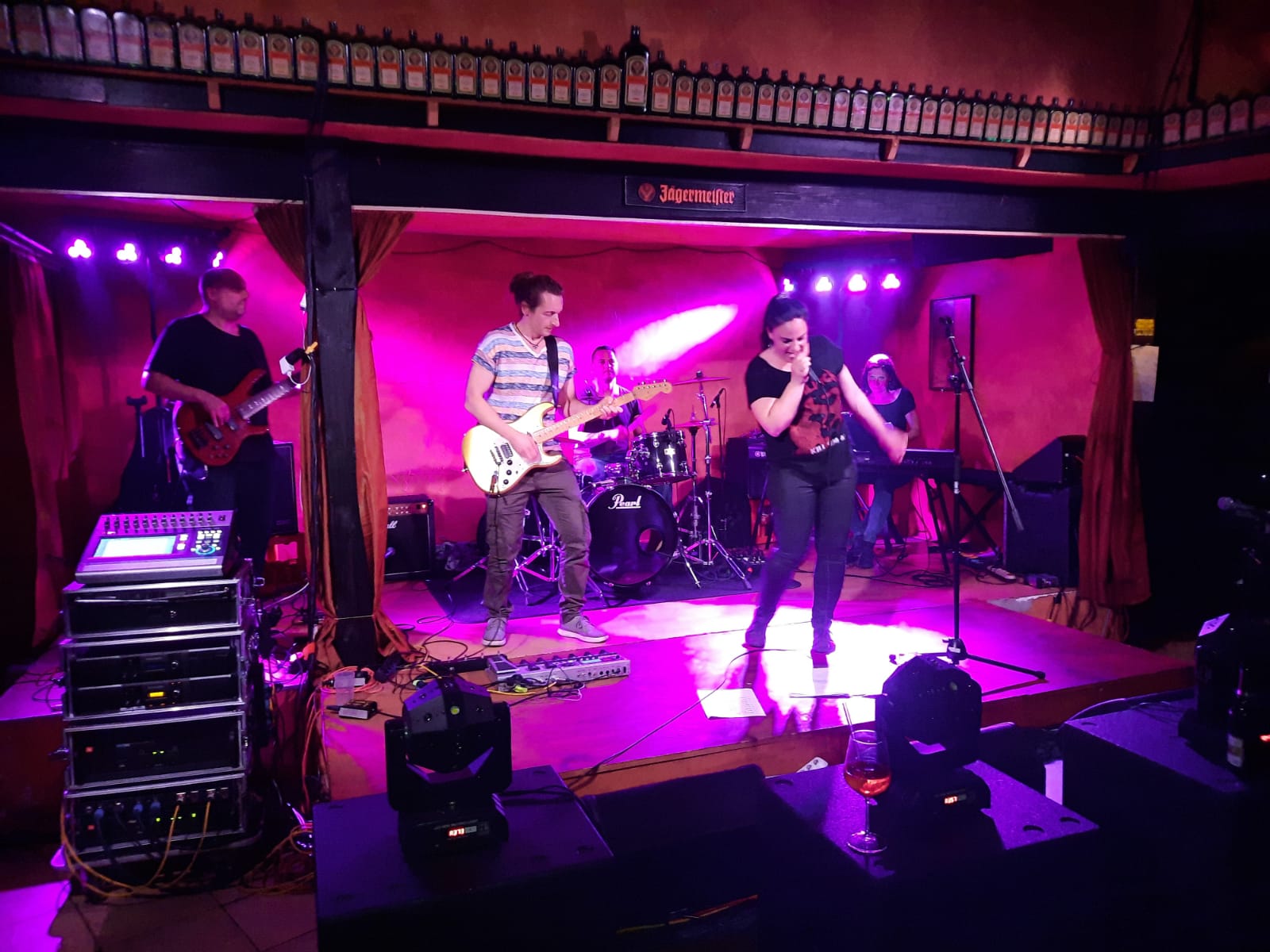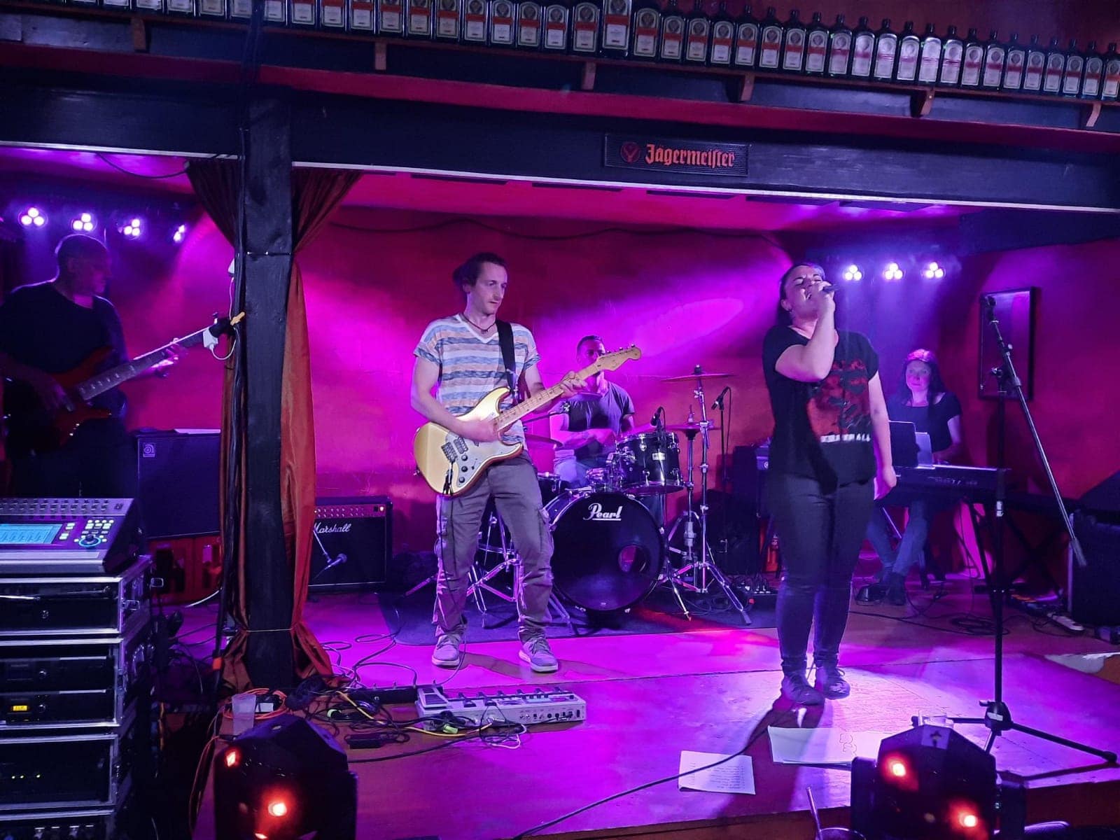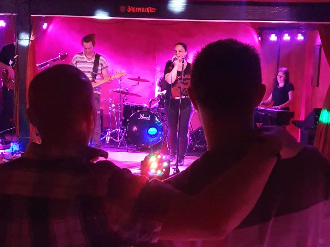 In Windeseile hat sie sich in unser Bandleben reingefuchst und bereichert unser Repertoire seitdem mit filigranen Einlagen, Septen, Umkehrungen und fetten Sounds! 🎶💥