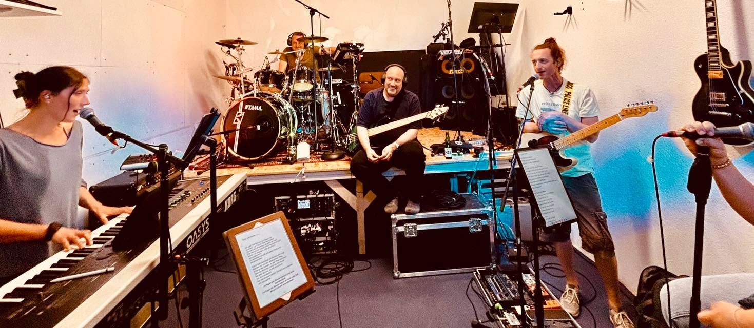 Wenn Stimmen gesetzt werden lauschen Trommler und Bassist ganz andächtig.